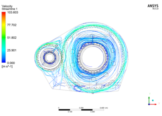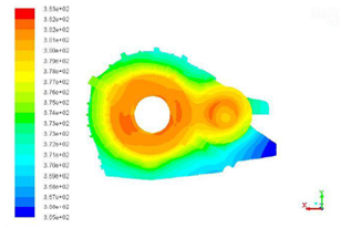 图11动车组高速齿轮箱润滑流场压力场温度场仿真 |